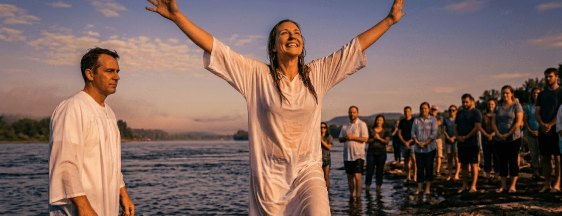 In der Taufe geben wir unseren Körper ins Wasser, was symbolisch für den Tod des alten Menschen steht. Stehen wir aus dem Wasser auf, so steht das symbolisch für die Wiedergeburt, für den „neuen Menschen“.
